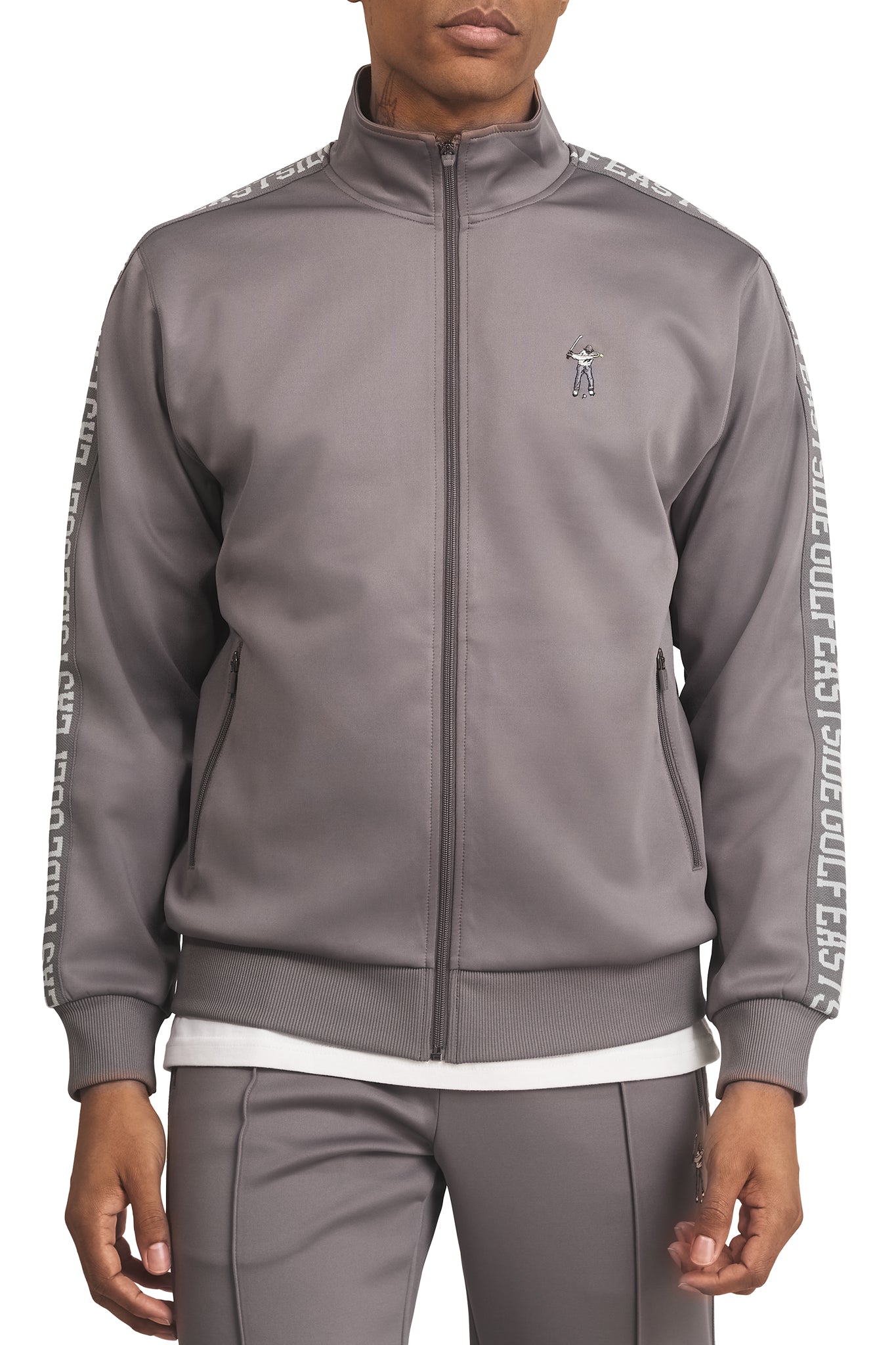 Inspired by the iconic tracksuits worn by athletes and cultural trendsetters, this jacket pairs seamlessly with the Eastside Golf Tracksuit Pants for a complete and polished style. Whether you're hitting the course, heading to an event, or adding a layer of luxury to your daily routine, this tracksuit jacket offers versatility and style that stands out.