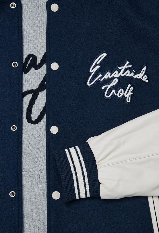 With its iconic contrast sleeves, ribbed cuffs, and beautiful embroidery, our varsity jacket is a must have addition to your collection.