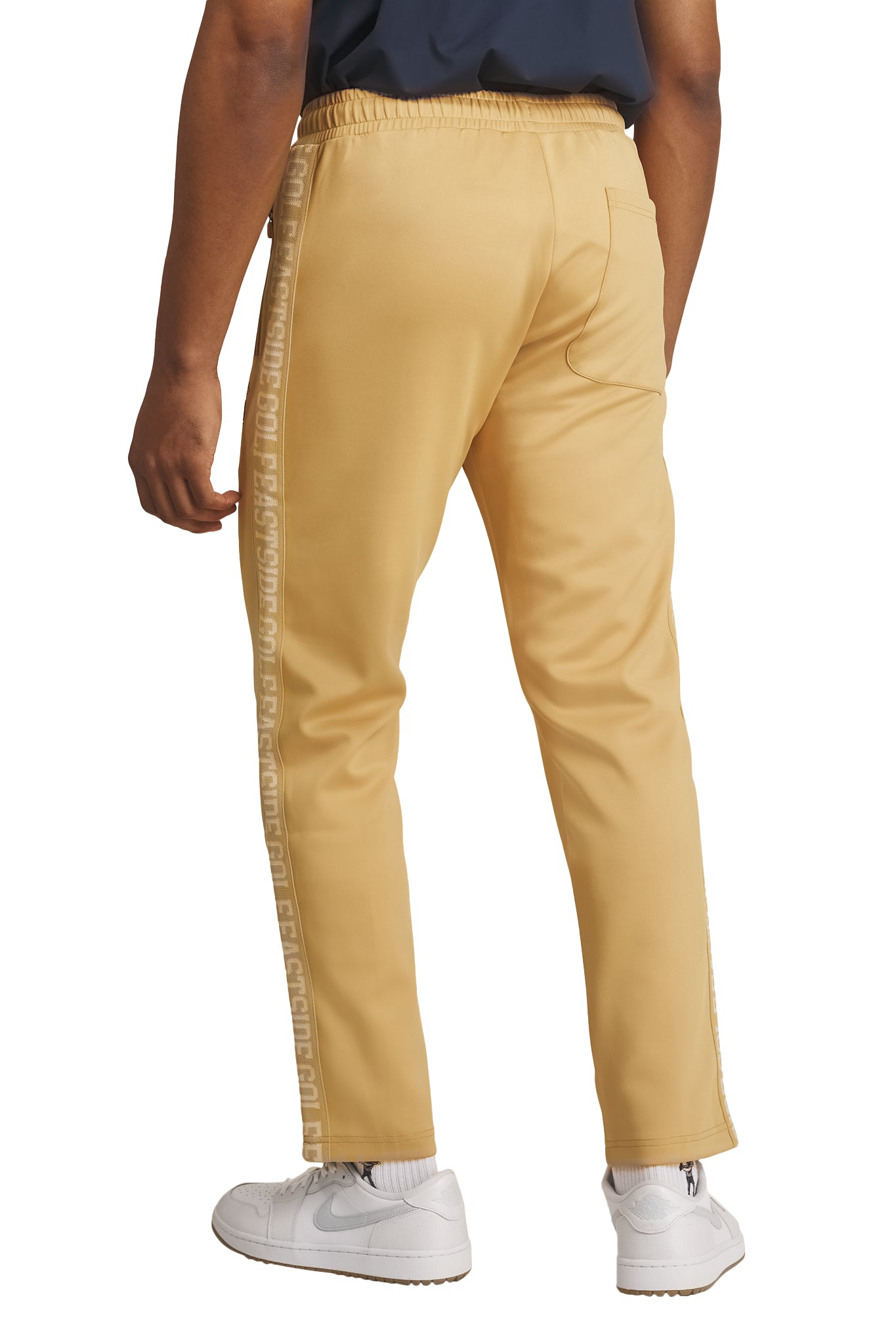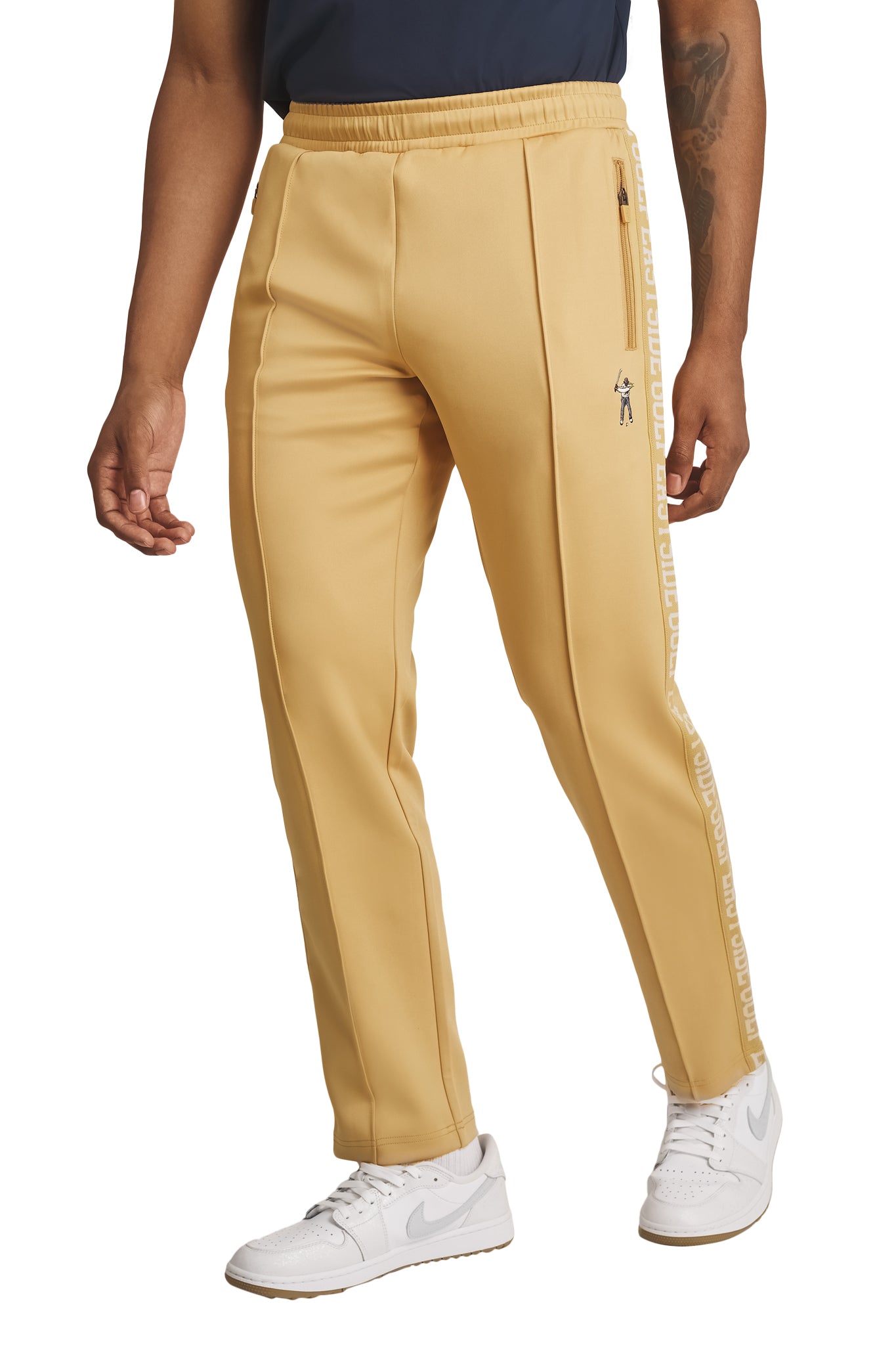A nod to the past with an eye towards the future. Our Tracksuit Pant pays homage to a streetwear classic while blending the modern golf lens of Eastside. A drawstring waist delivers an adjustable fit while the zippered front pockets will secure valuables such as your phone or wallet. Pairs with our Tracksuit Jacket.