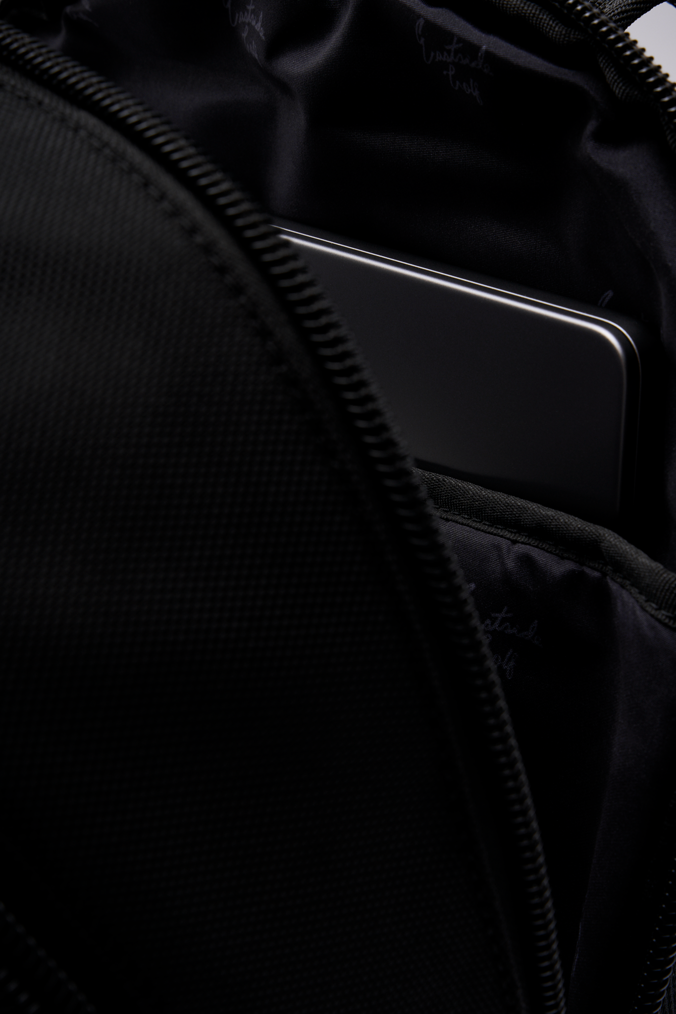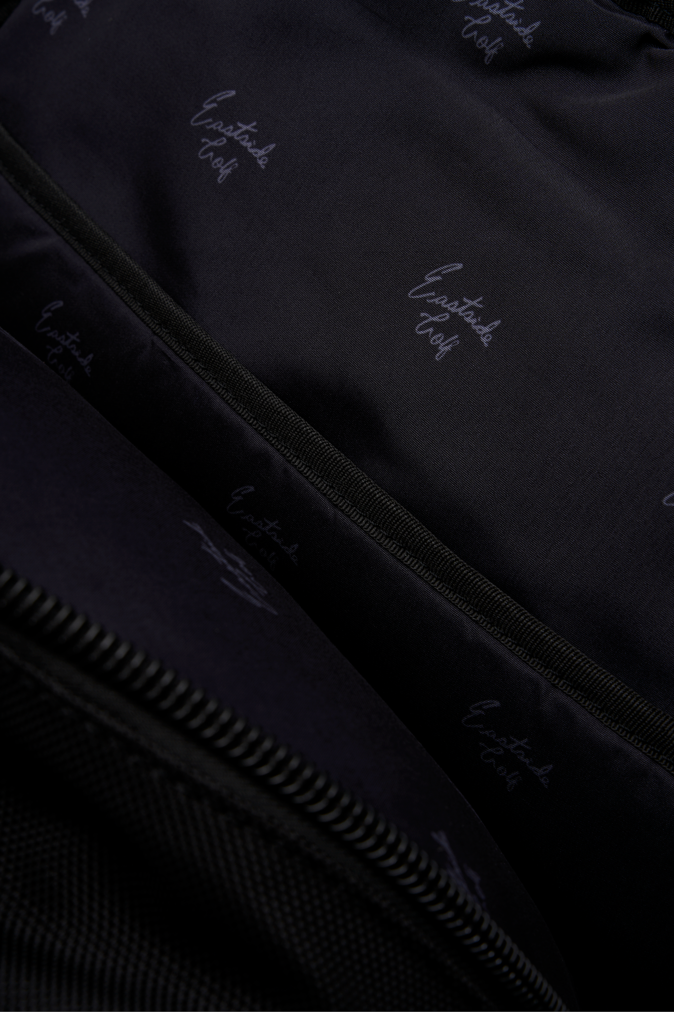 • Poly-satin interior lining with all-over script logo